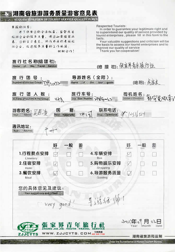 廣東廣州市“吳小姐”與張家界青旅旅游顧問——客服經(jīng)理“李朝陽”在08月22日取得聯(lián)系,并就線路、行程的合理選擇、旅游景點的選定,以及服務(wù)的具體要求、范圍與廣州晶爾曼首飾有限公司負(fù)責(zé)人吳女士,做了多次在線溝通和電話溝通,經(jīng)過仔細(xì)的商磋,最終在08月24日雙方簽訂了《國內(nèi)旅游組團(tuán)接待合同》,并正式確立由我社負(fù)責(zé)全程接待安排;吳總一行14人,于08月25上午自廣州搭乘CZ3385次航班飛抵張家界,當(dāng)日便開始了為期4天行程的魅力湘西之旅。